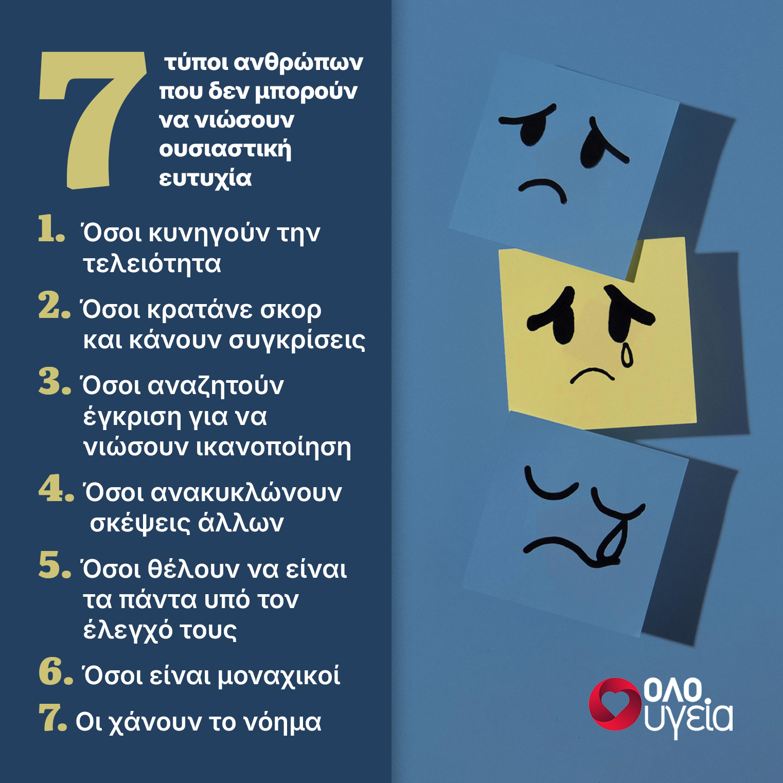 Η ευτυχία δεν είναι κάτι που εμφανίζεται μαγικά – συχνά τη χάνουμε μέσα από τα χέρια μας επειδή πέφτουμε σε μοτίβα που μας τη στερούν. Κάποιες συμπεριφορές μπορεί να φαίνονται αθώες, αλλά μπορούν να μας οδηγήσουν σε έναν φαύλο κύκλο απογοήτευσης και θλίψης. Ποιοι είναι οι 7 τύποι ανθρώπων που δεν θα νιώσουν ποτέ πραγματικά ευτυχισμένοι; Τι μπορείτε να κάνετε για νιώσετε βαθιά ικανοποίηση;