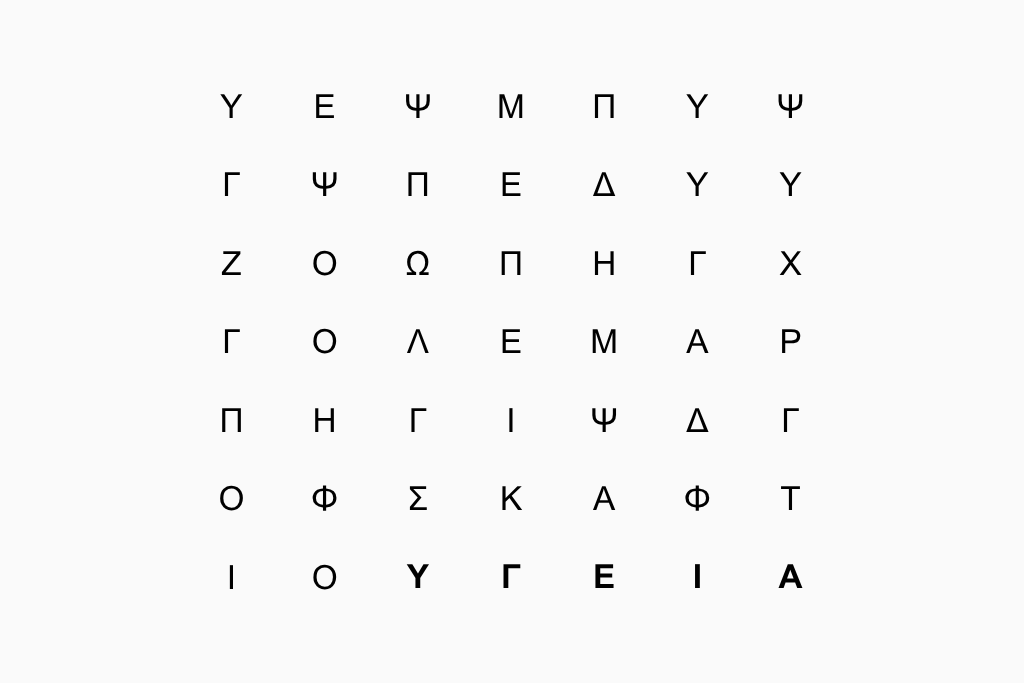 Η παραπάνω εικόνα δείχνει ένα πλέγμα 7×7 γεμάτο με ένα σύνολο από τυχαία γράμματα.