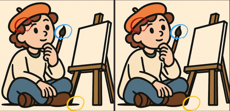 Τα παζλ «βρες τη διαφορά» έχουν γίνει η μεγαλύτερη τάση και έχουν σχεδιαστεί για να δοκιμάσουν τις δεξιότητες προσοχής σας. Το παρακάτω παζλ παρουσιάζει έναν ζωγράφο που κάθεται μπροστά σε έναν άδειο καμβά. Υπάρχουν 3 μικρές διαφορές κρυμμένες ανάμεσα στις δύο εικόνες και πρέπει να τις εντοπίσετε όλες μέσα σε μόλις 79 δευτερόλεπτα.